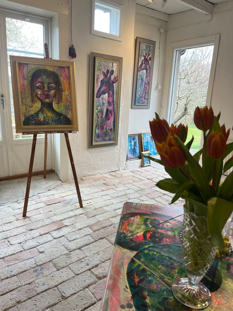 Ett kliv ner till Österlen, ett kliv framåt som konstnär. Konstrundan 2026 fick jag möjlighet att ställa ut i Årstiders lokaler, vilket blev mycket framgångsrikt. Fyra dagar fyllda av vackra människor som vill prata färg, form och skapande. Några av mina damer fick flytta till nya hem, vilket jag är tacksam för. Tacksam för att ni gillar vad jag gör. Gillar färg, styrka och glädje.